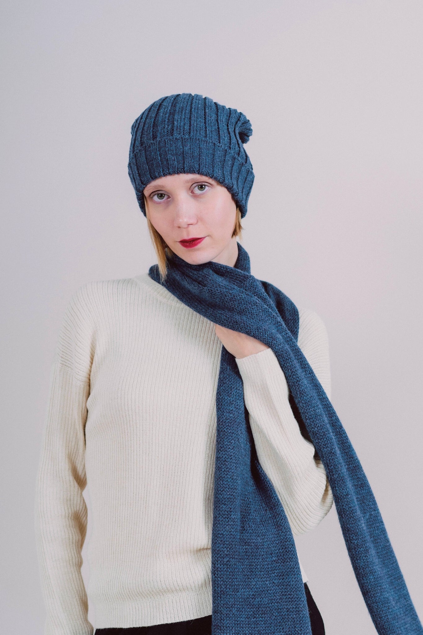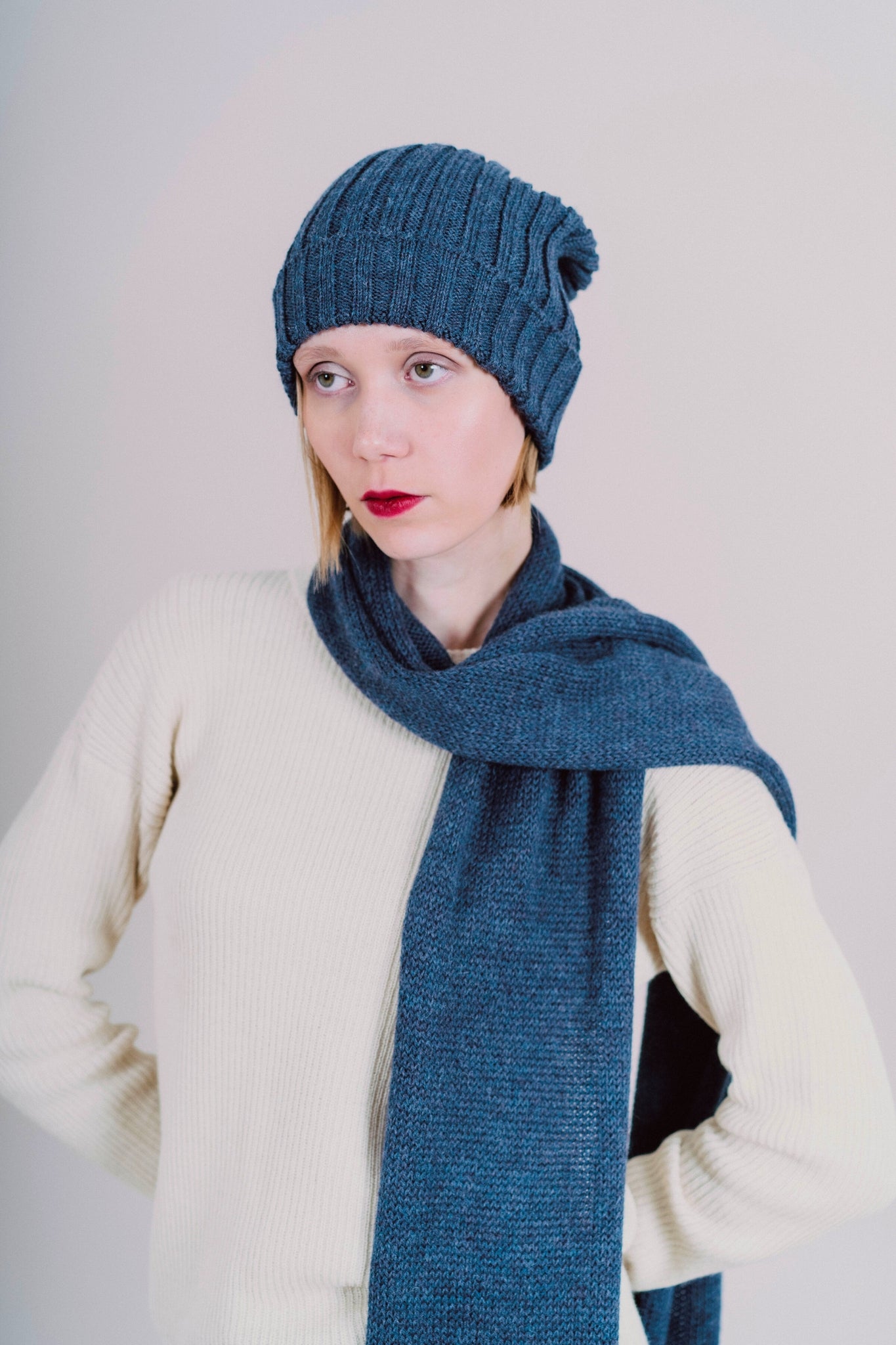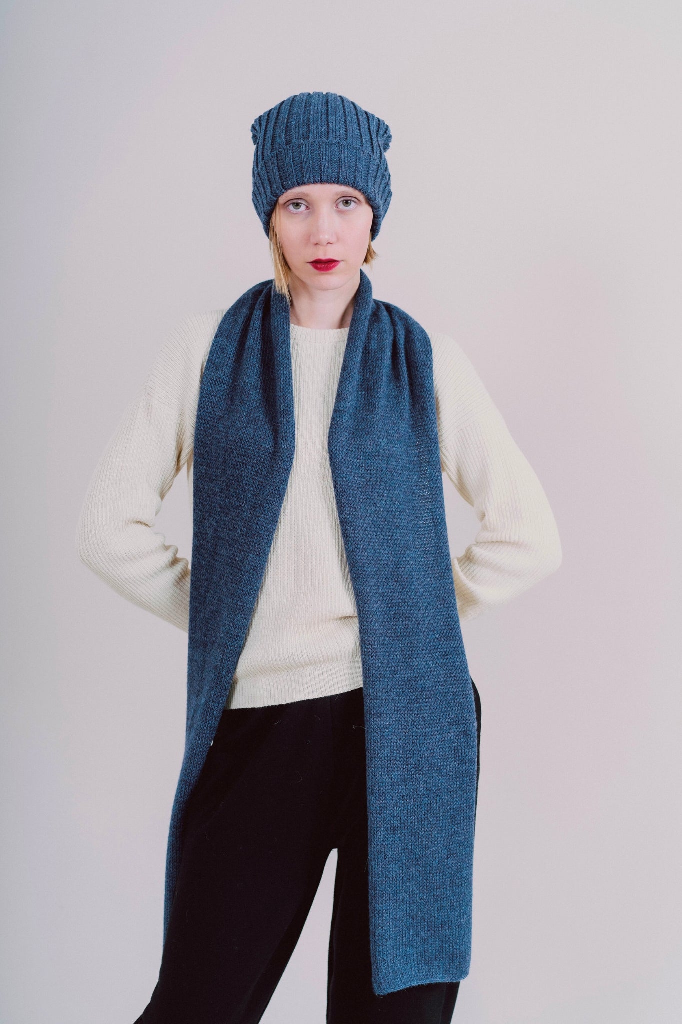 BUFANDA Y GORRO "MAYU" AZUL - 100% BABY ALPACA