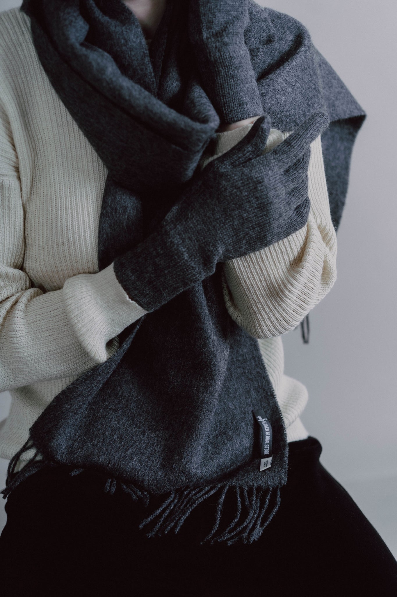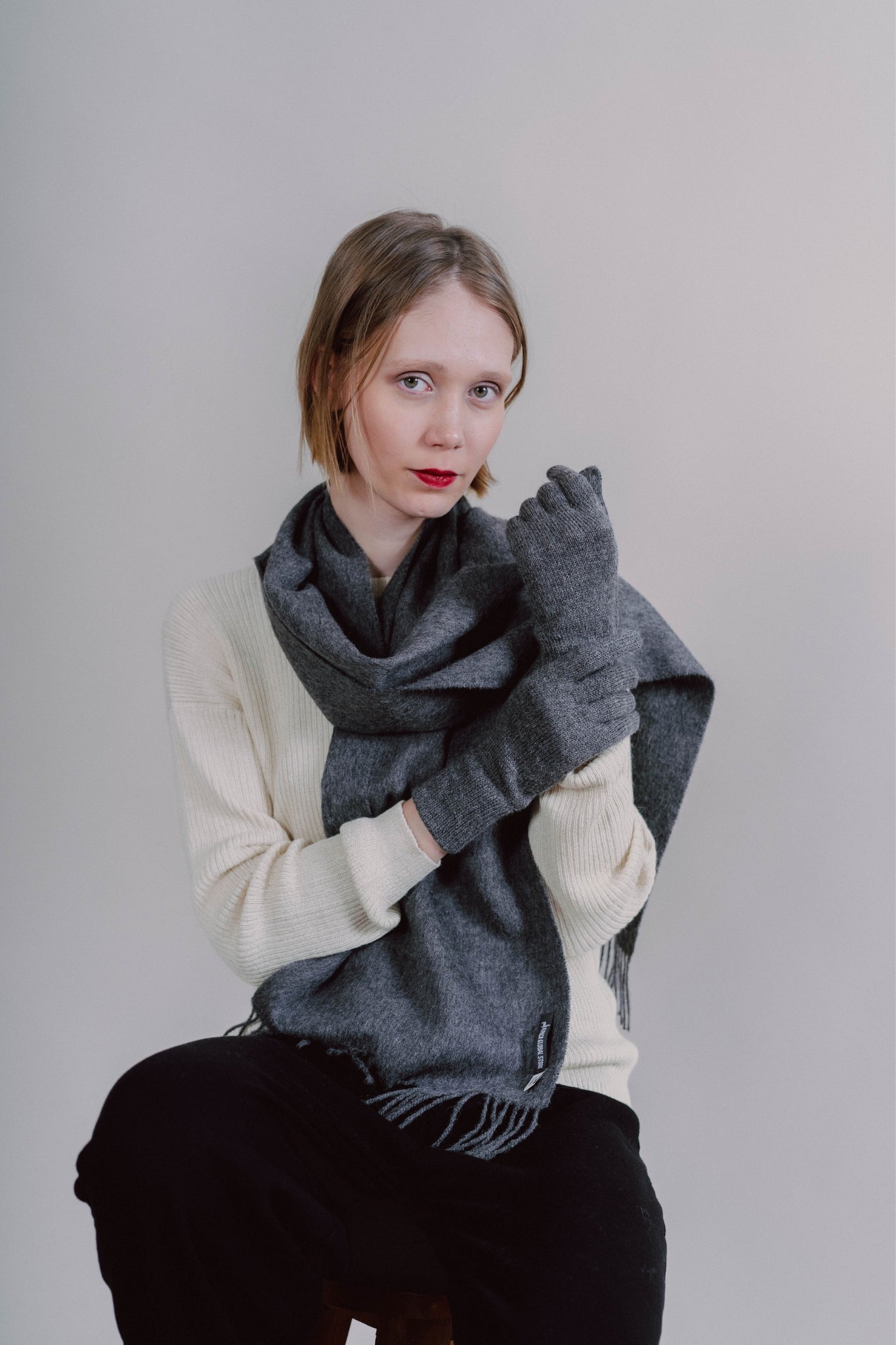 BUFANDA Y GUANTES GRIS - 100% BABY ALPACA