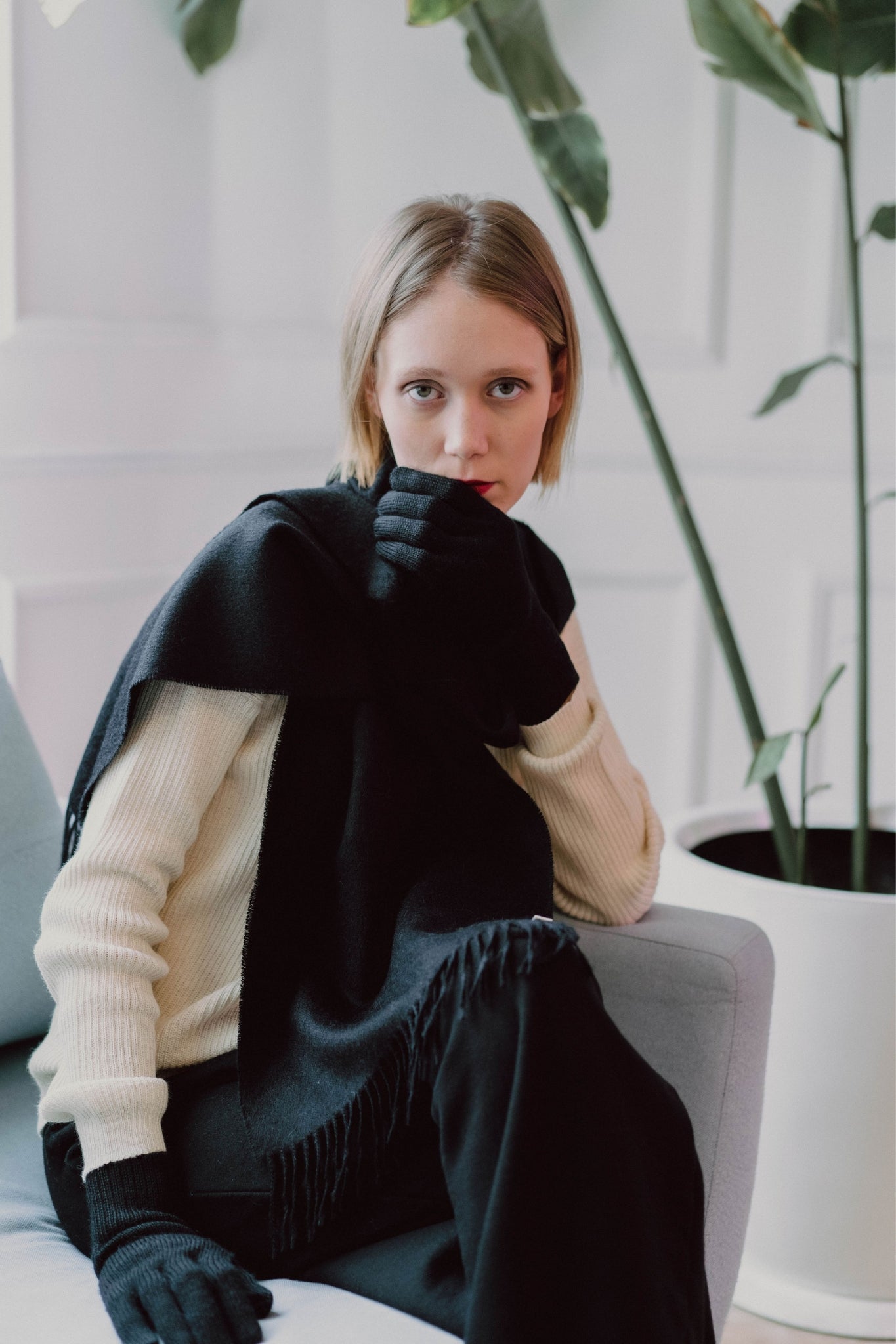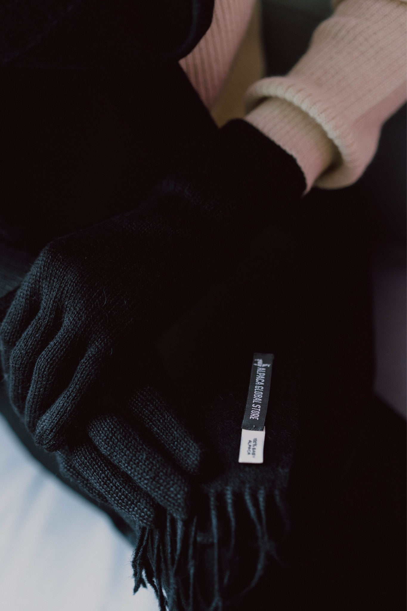 BUFANDA Y GUANTES NEGRO - 100% BABY ALPACA