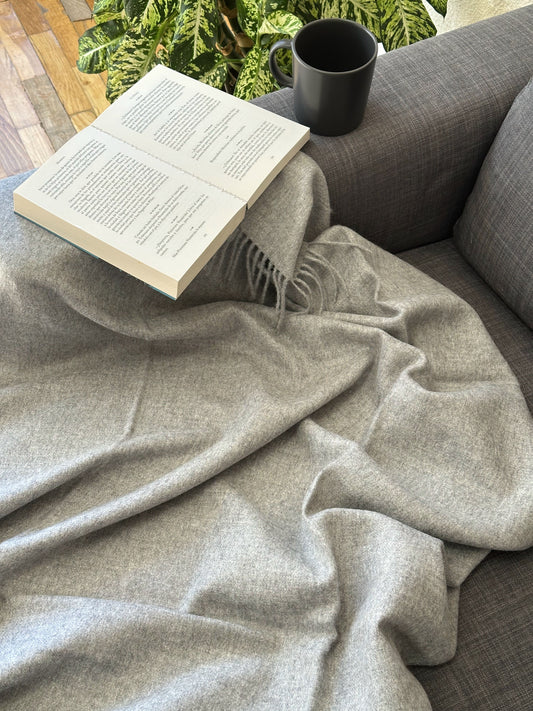 <tc>MANTA DE PUNTO GRIS - 100% BABY ALPACA</tc>