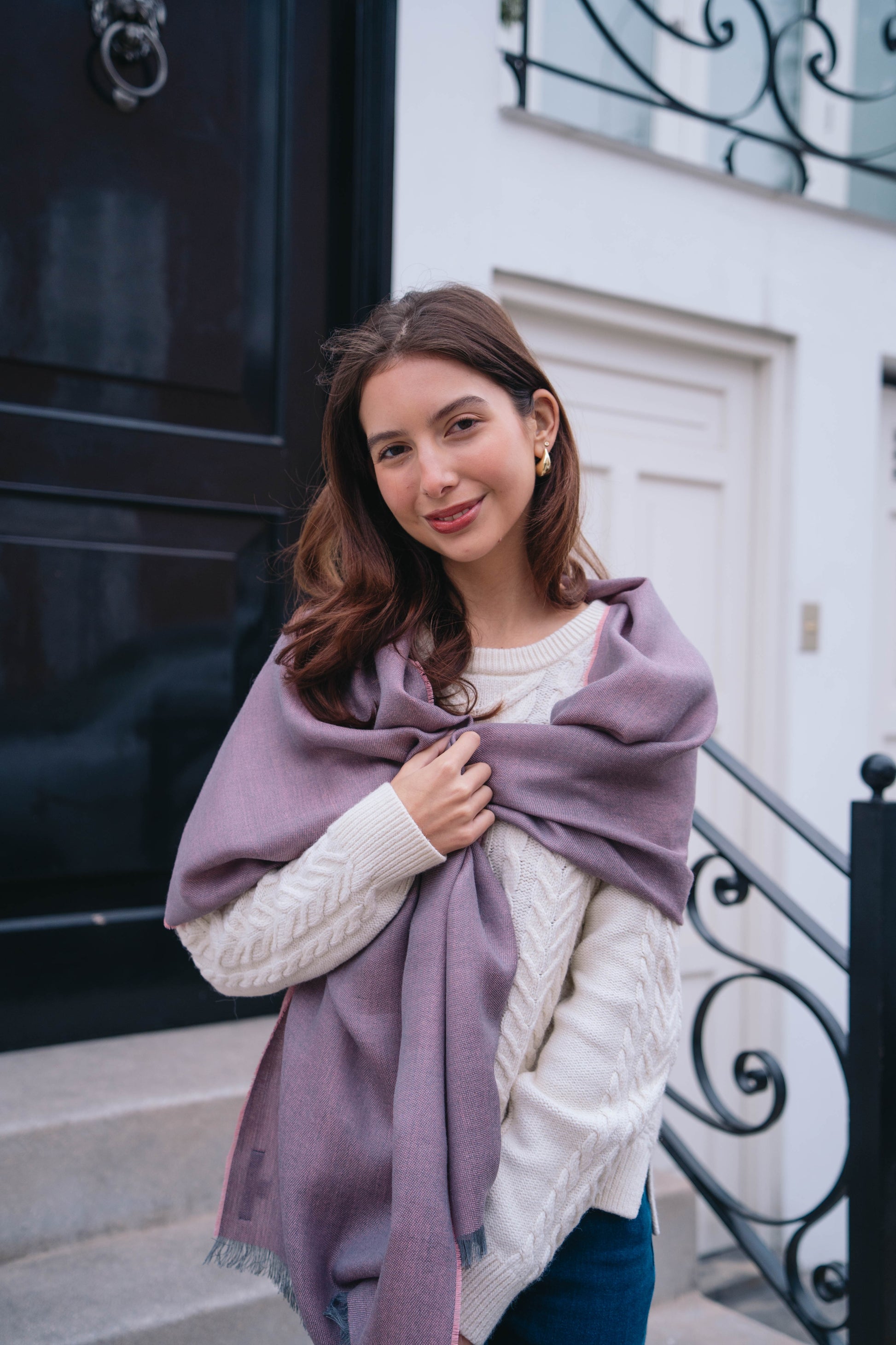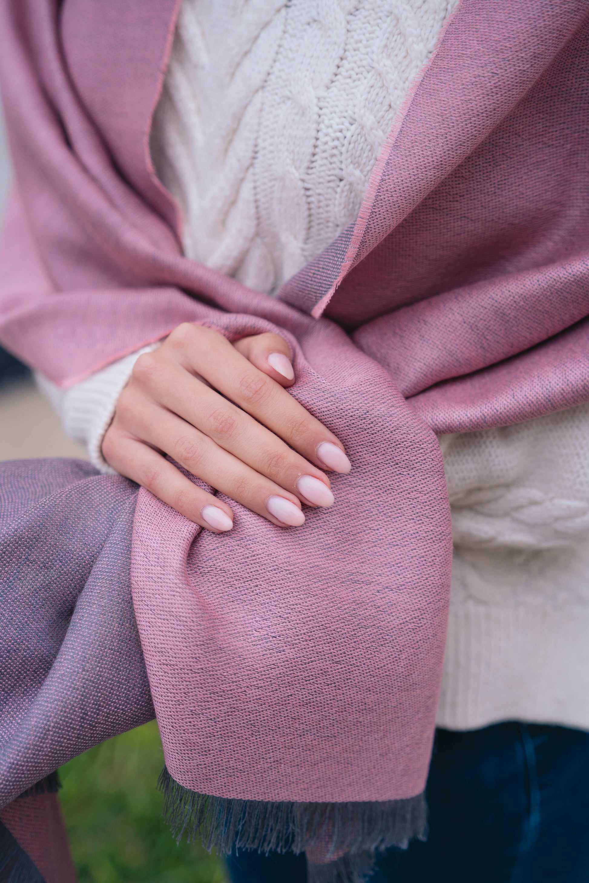 BUFANDA ROSA Y GRIS - BABY ALPACA