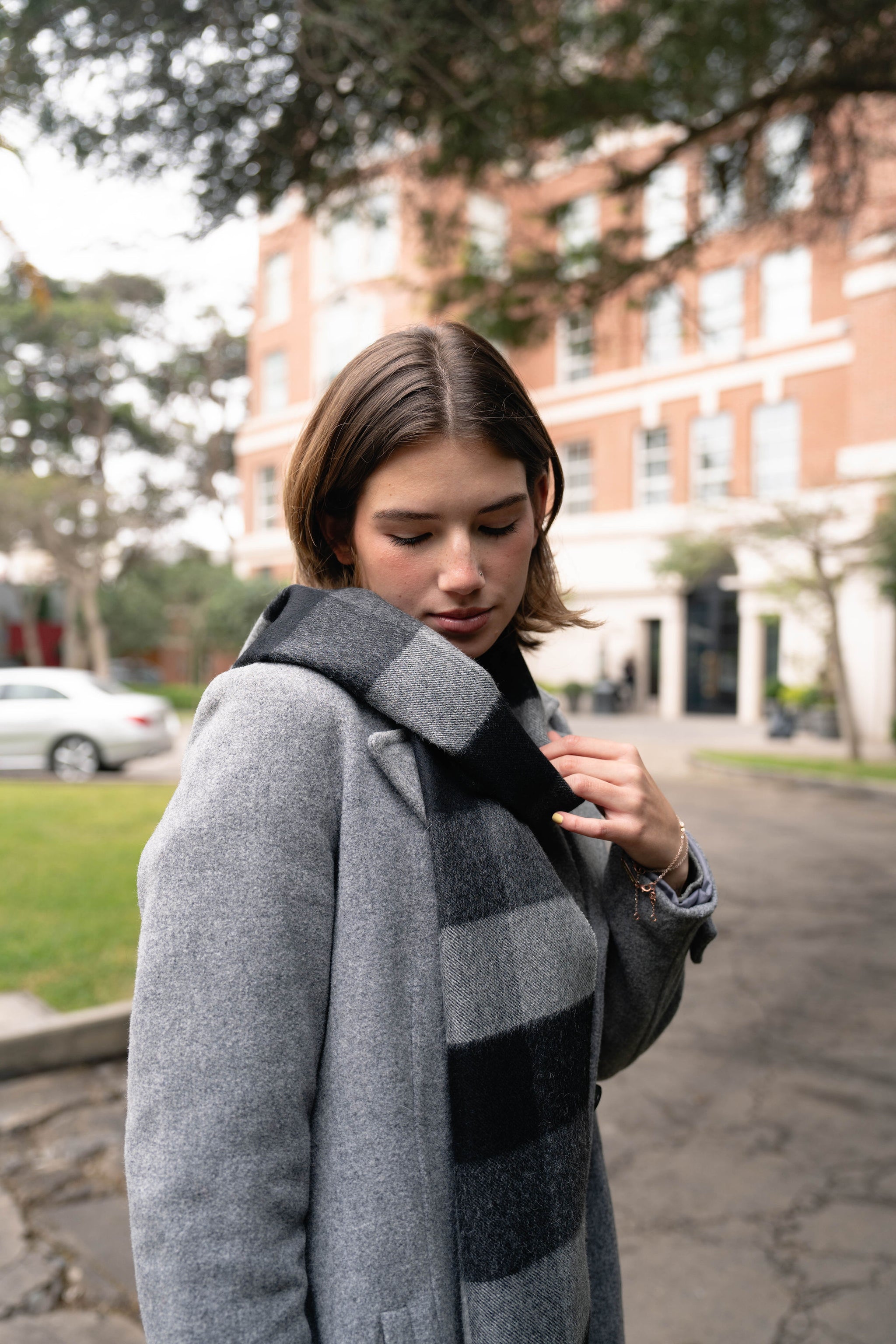<tc>ÉCHARPE CARREAUX GRISE - 100% BABY ALPAGA</tc>