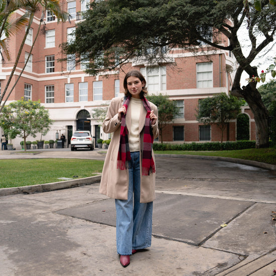 Ajoutez une touche de charme intemporel à vos tenues avec notre écharpe à carreaux rouge en alpaga. Tissée avec soin à partir d’une laine d’alpaga douce et légère, elle offre une chaleur agréable tout en restant raffinée et élégante. Ses carreaux rouges apportent une note de couleur vibrante qui illumine les journées d’hiver. Parfaite pour accompagner un manteau classique ou une tenue décontractée, cette écharpe incarne à la fois confort et style. Offrez-vous l’élégance naturelle de l’alpaga et traversez la saison froide avec distinction.