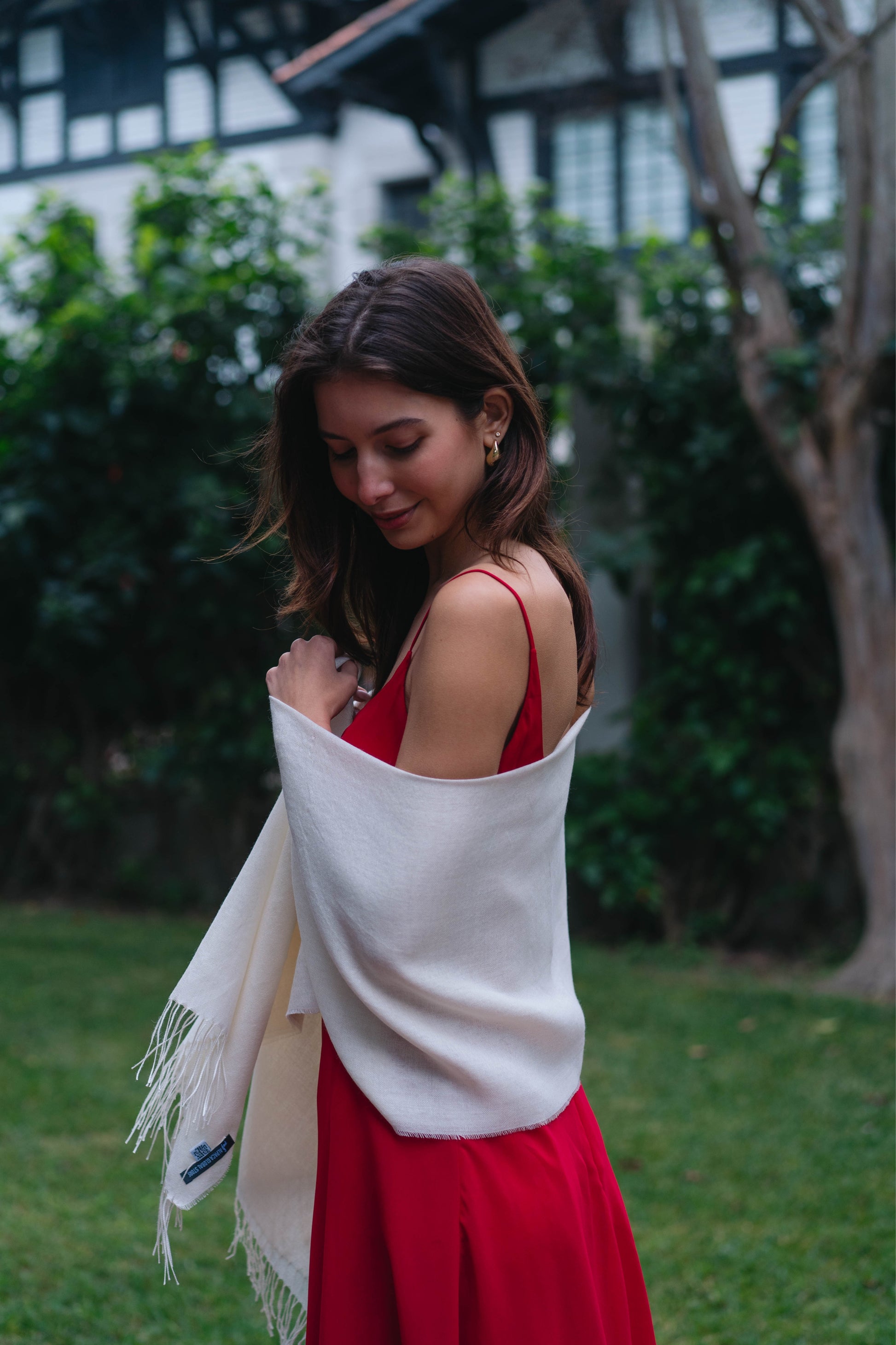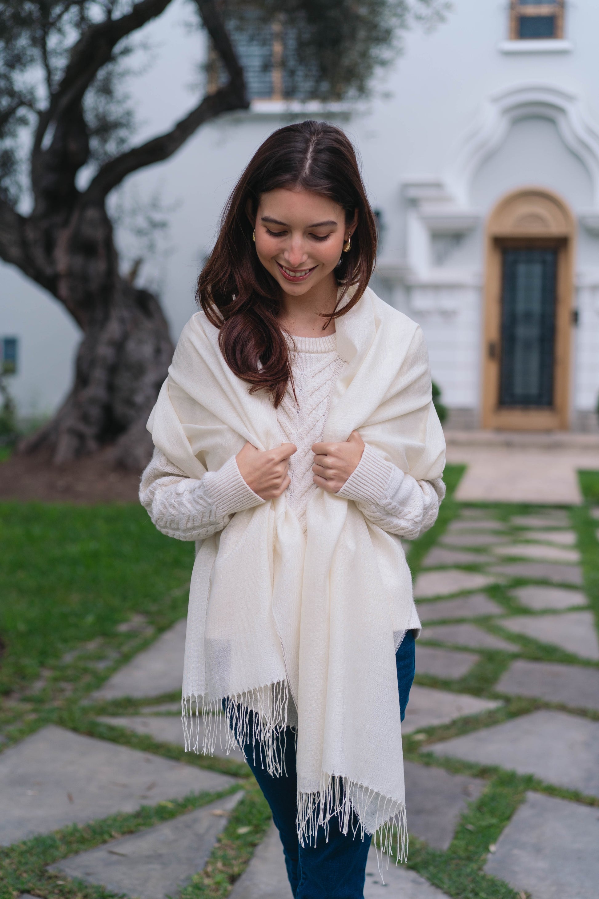 Transform your wardrobe with our luxurious shawl, crafted from 70% baby alpaca and 30% silk. Featuring a chic design that seamlessly blends the softness and warmth of alpaca with the elegant sheen of silk, this shawl is a must-have accessory. Don't miss out on the chance to add a touch of sophisticated style to your outfit. Shop now and experience the ultimate in comfort and elegance.