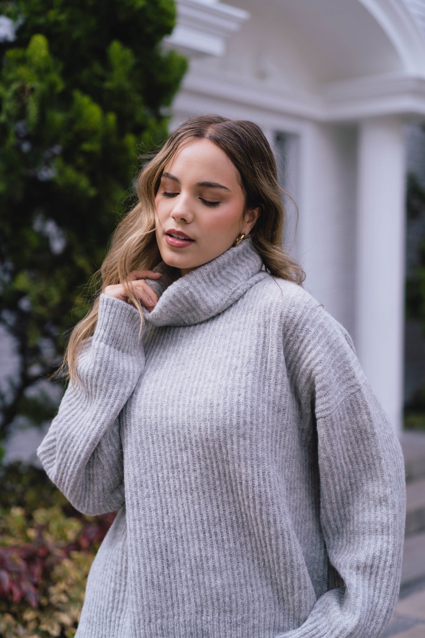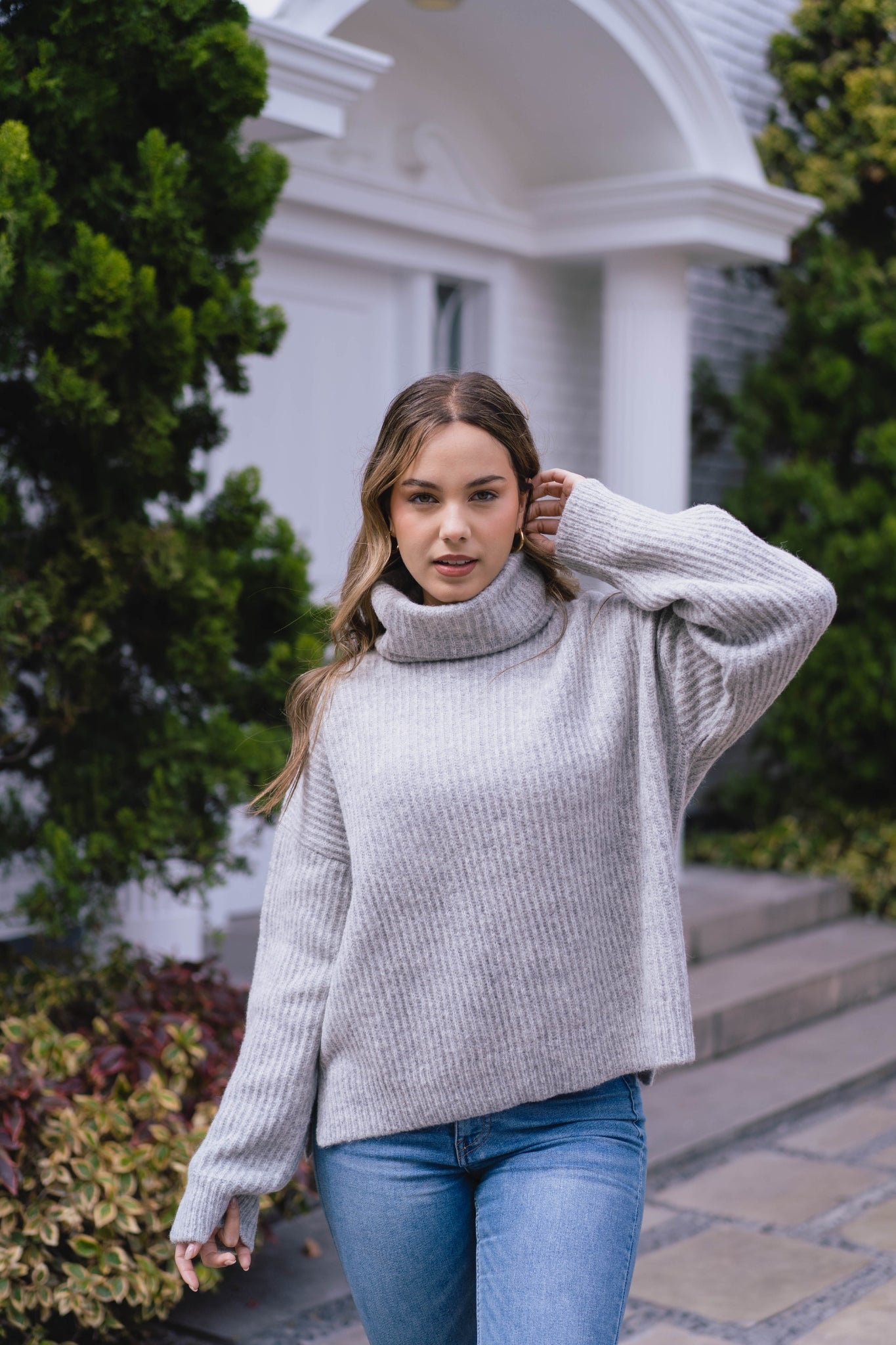 SWEATER HIGH COLLAR GREY - BABY ALPACA AND MERINO